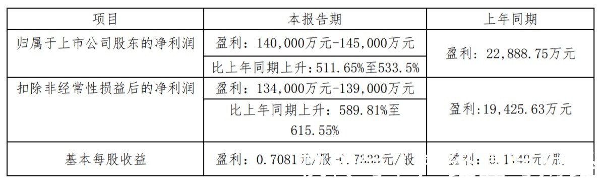 根据藏格矿业发布的业绩预告,2021年该公司预计归属于上市公司股东的净利润为14亿元-14.50亿元,比上年同期上升511.65%至533.5%;扣除非经常性损益后的净利润为13.40亿元-13.90亿元,比上年同期上升589.81%至615.55%。