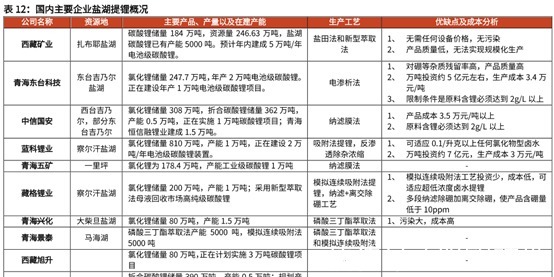 我国本身就不是一个锂矿丰富的国度,锂资源更多是以盐湖的形式存在,资源量占比超80%,其中青海资源量310万吨,西藏222万吨。此前由于我国盐湖高镁锂比、卤水成分复杂、品位低等特点使得盐湖提锂的难度较高,无法形成较大的产能,但是随着技术进步,技术路线层出不穷,成本也得到加快下降使得大规模应用变为可能。